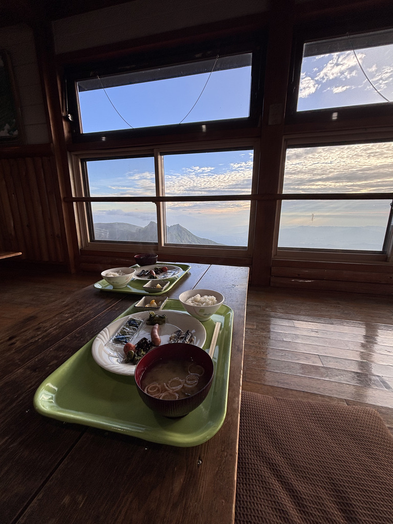 雲が多くて食堂から何も見えなかったけど、出発する頃には晴れてこの日も青空でした。
