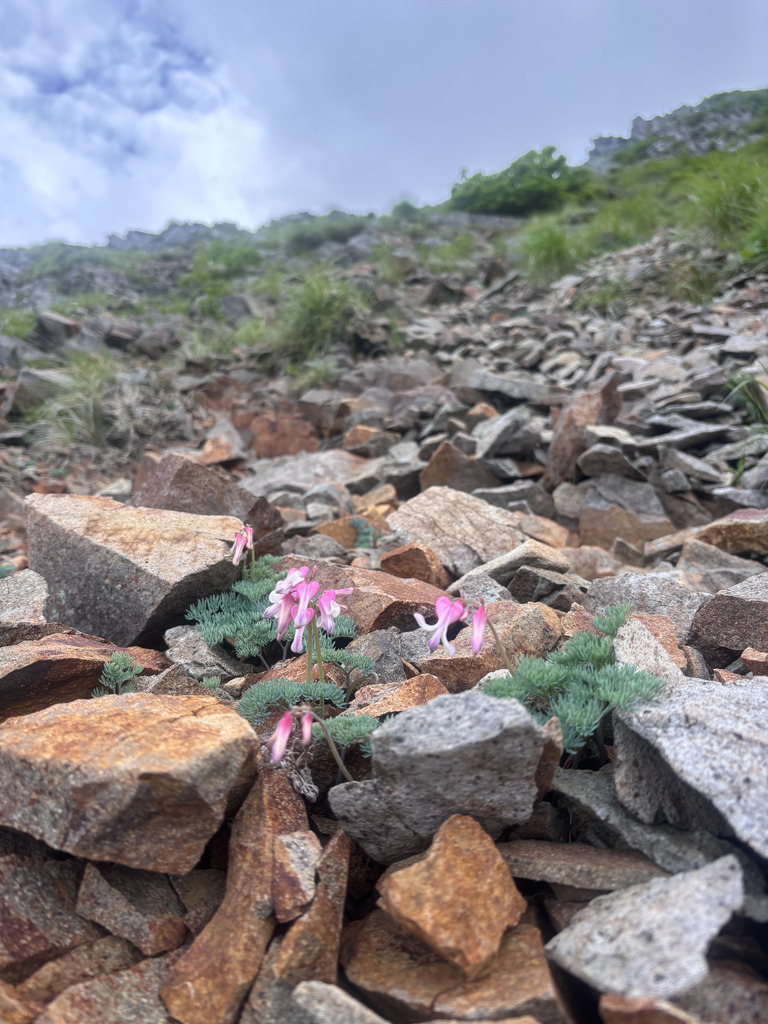 午後から天気が崩れる予報、急いで下山しますが、ガレ場が多く滑って転ぶといけないのでこの辺も慎重に。