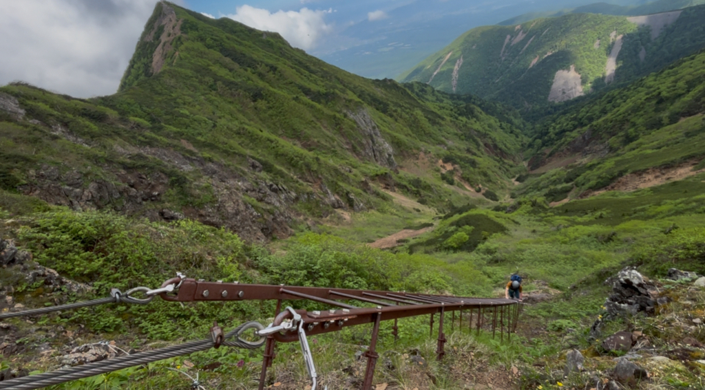 八ヶ岳のキレットには梯子があり、長い、高い、鉄の梯子です。