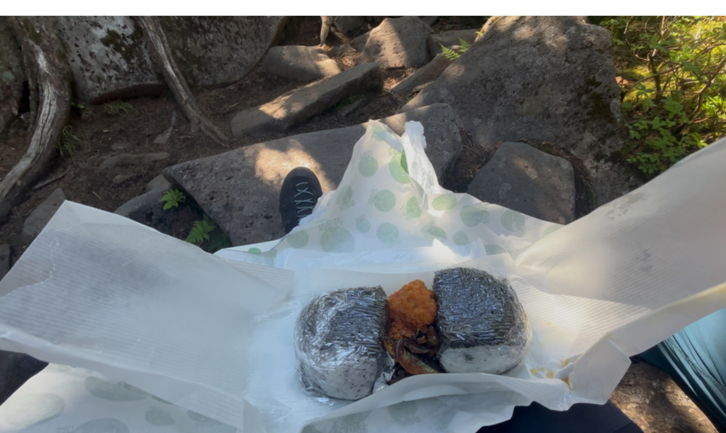 さて、山中峠までの平坦な道を楽しみ、途中で朝食のお弁当をいただく。