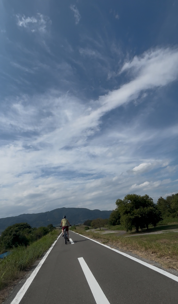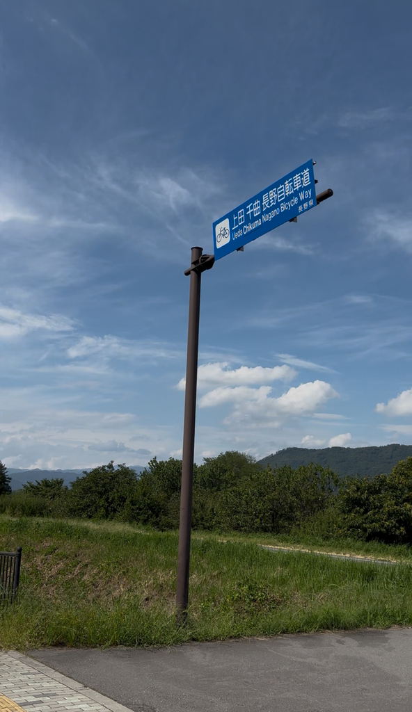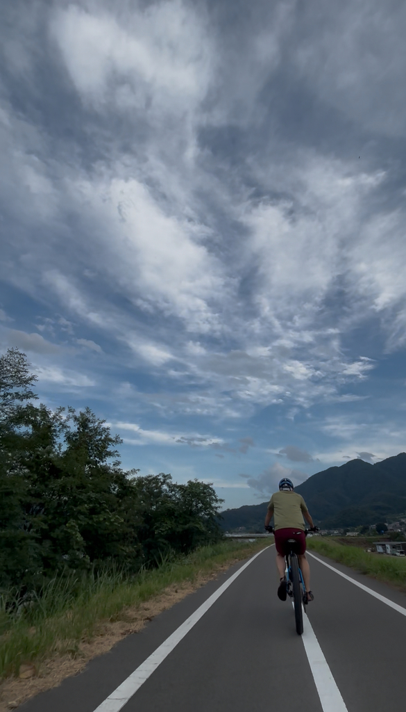 千曲川沿にある自転車道はほぼアップダウンがないので、スイスイと自転車を漕ぐことができます。