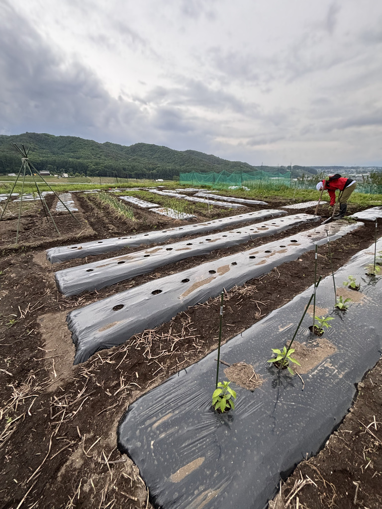 ここで気をつけなければいけないことが、まだ霜が降りるかもしれないという事。標高1000Mの畑の春はとても遅い。