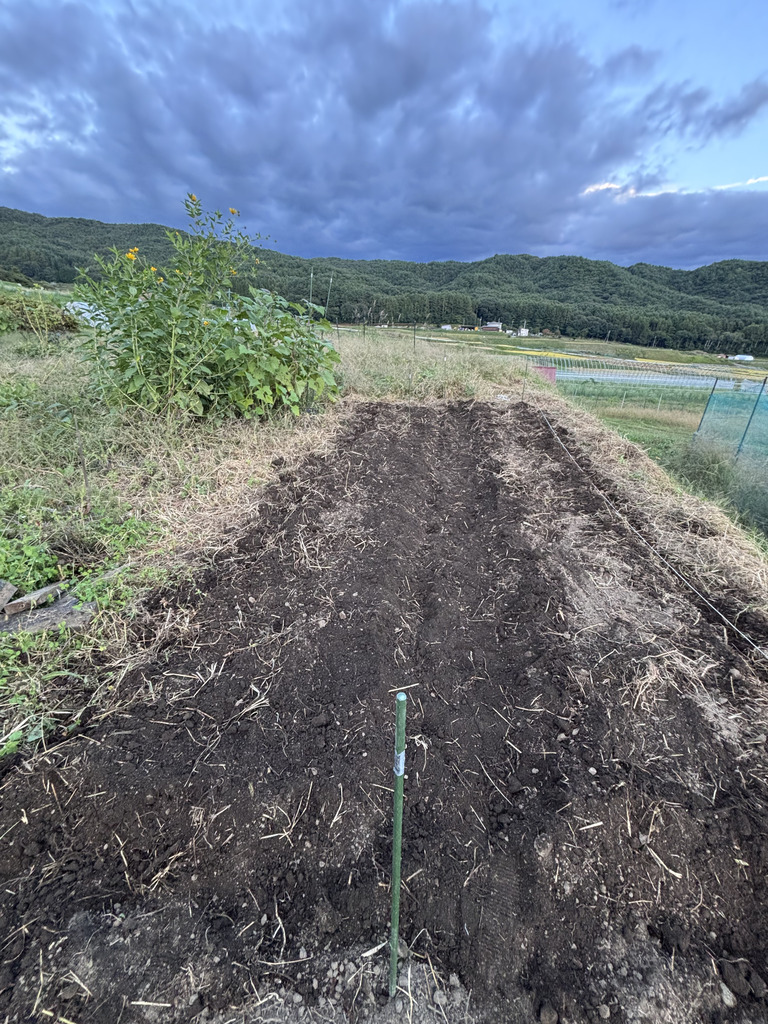 GWが終わり、また畑に戻って残りの畝作りと作付けを始めていく。